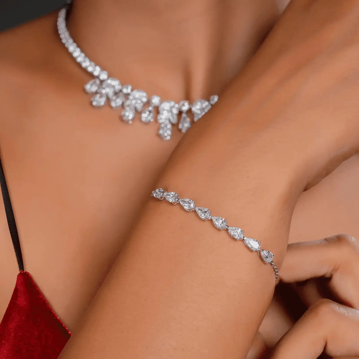 Eight pear-cut lab grown diamonds, suspended in enchantment. The Sleeping Beauty Diamond Bracelet is a diamond charm bracelet that rewards the second look — each teardrop-shaped stone positioned to catch light at its most flattering angle, 2.62 carats of pear-cut brilliance that feels as quiet as a secret and as powerful as a statement.